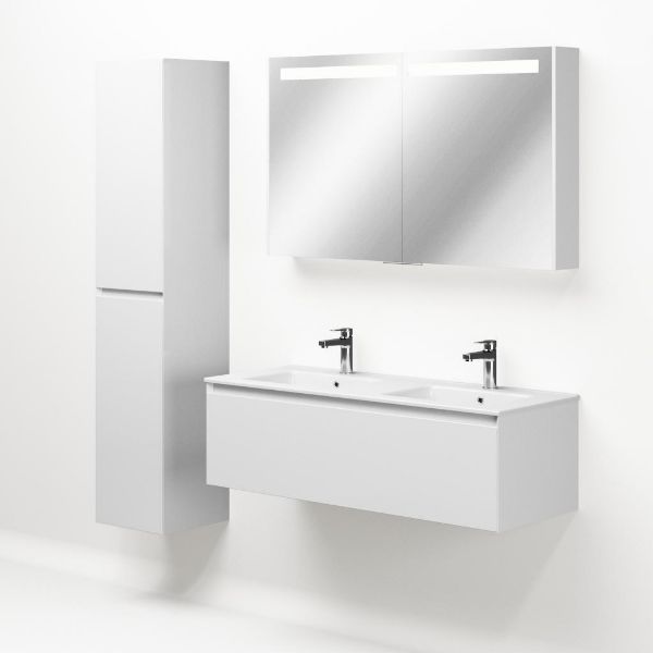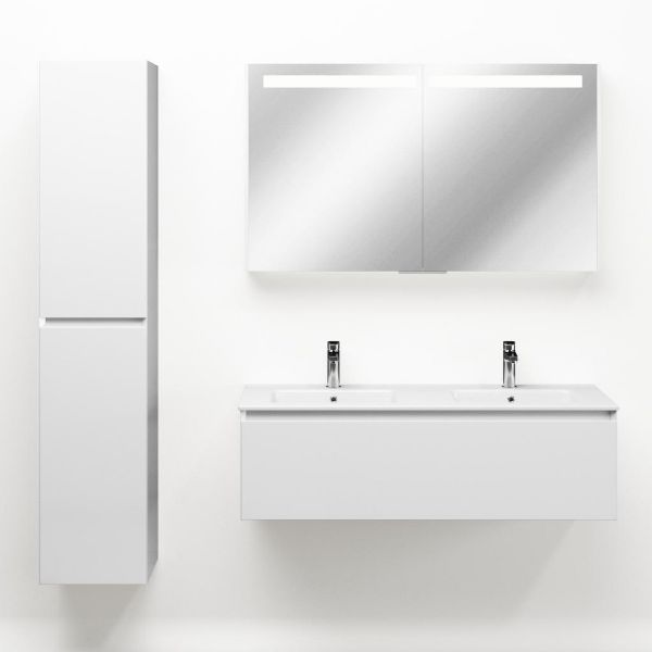| Bellanti Solo/Etna badmeubel 120x46 1 softclose lade wit hoogglans greeploos keramische wastafel dubbel wit met 2 kraangaten |