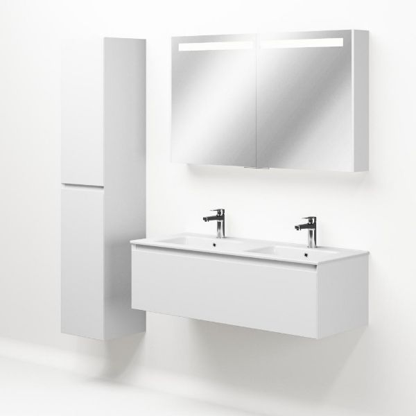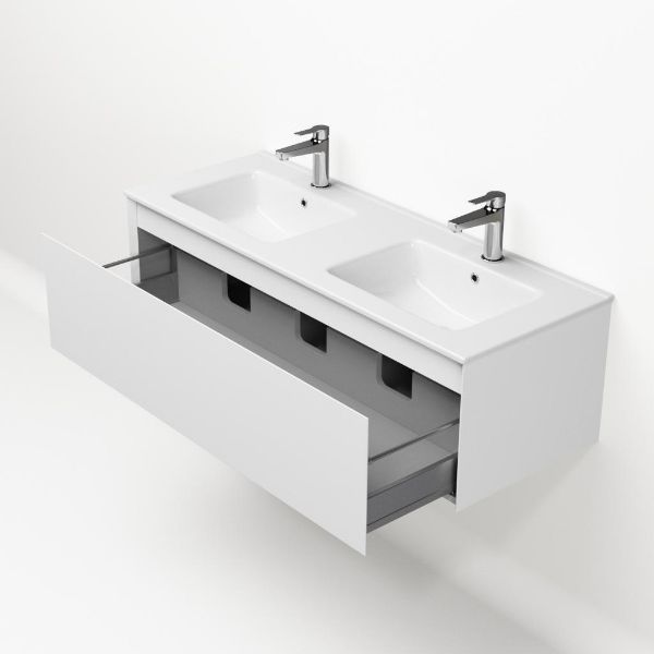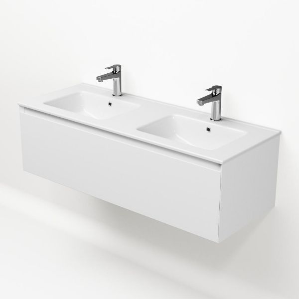 | | Bellanti Solo/Etna badmeubel 120x46 1 softclose lade wit mat greeploos keramische wastafel dubbel wit met 2 kraangaten |