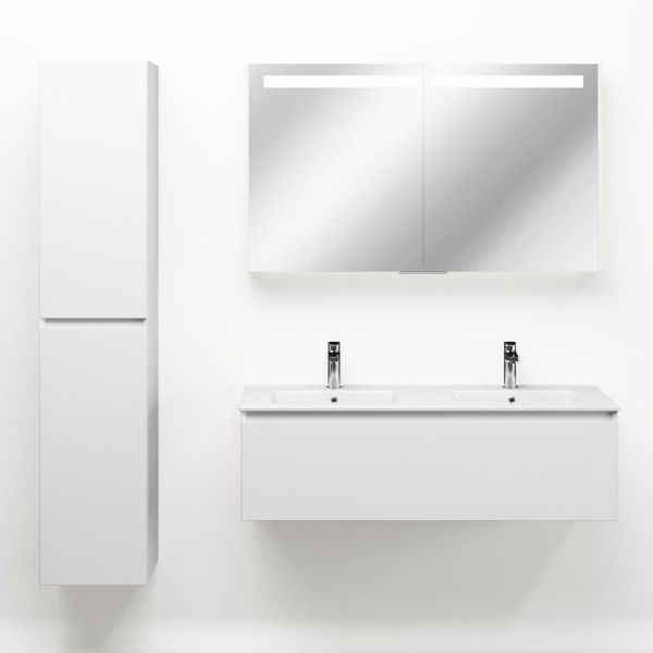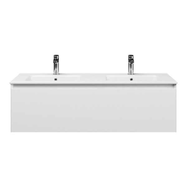 | Bellanti Solo/Etna badmeubel 120x46 1 softclose lade wit mat greeploos keramische wastafel dubbel wit met 2 kraangaten |