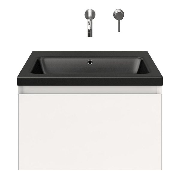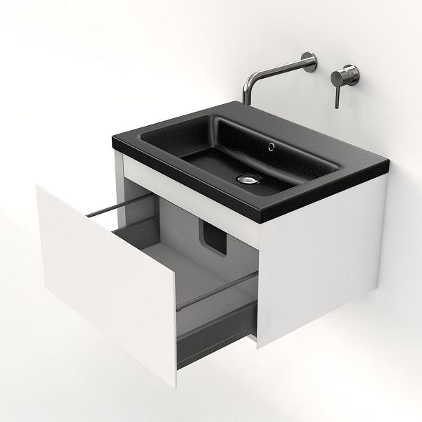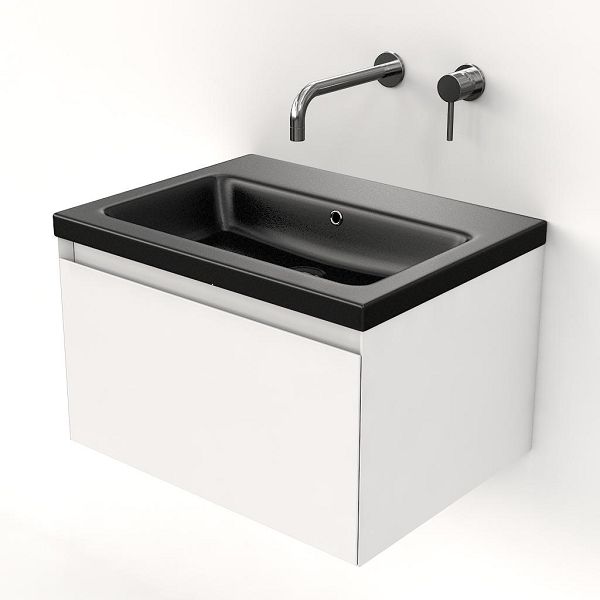 | | Bellanti Solo/Amelia badmeubel 60x46 1 softclose lade wit hoogglans greeploos keramische wastafel zwart mat zonder kraangaten |