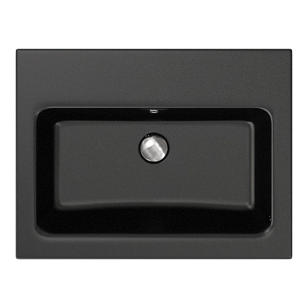 | Bellanti Solo/Amelia badmeubel 60x46 1 softclose lade wit hoogglans greeploos keramische wastafel zwart mat zonder kraangaten |