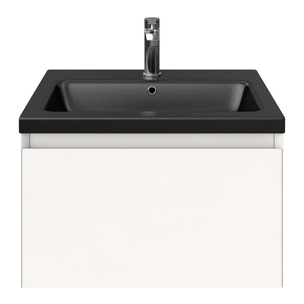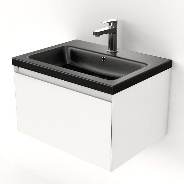 | Bellanti Solo/Amelia badmeubel 60x46 1 softclose lade wit mat greeploos keramische wastafel zwart mat met 1 kraangat |