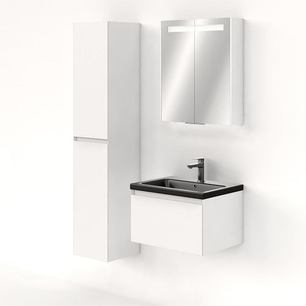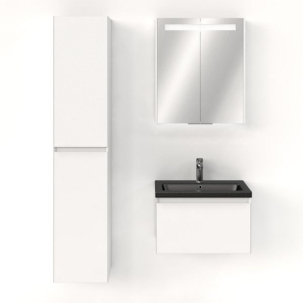 Greeploos badkamermeubel in de kleur wit mat is 60 cm breed. De wastafel is vervaardig in keramiek en heeft de kleur zwart mat keramiek. Dit badkamermeubel met deze wastafel is leverbaar tussen de 60 cm t/m 140 cm