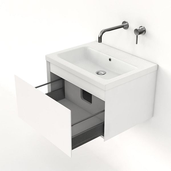 | Bellanti Solo/Amelia badmeubel 60x46 1 softclose lade wit mat greeploos keramische wastafel wit mat zonder kraangaten |