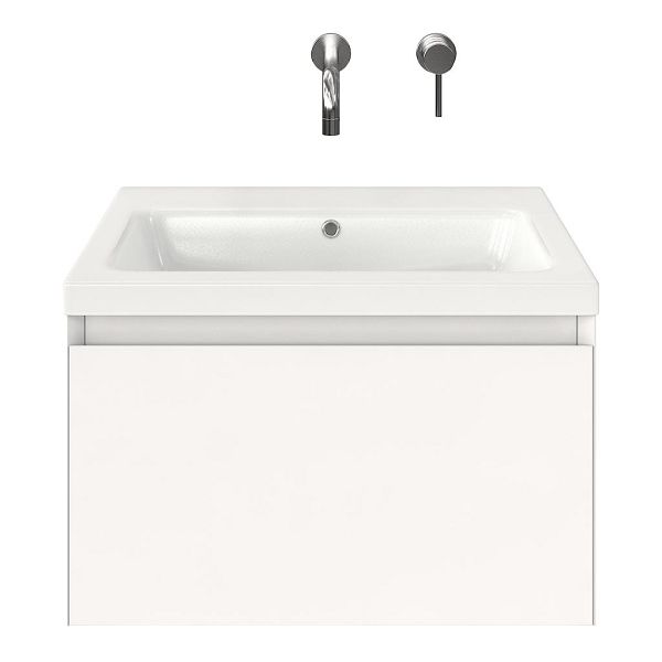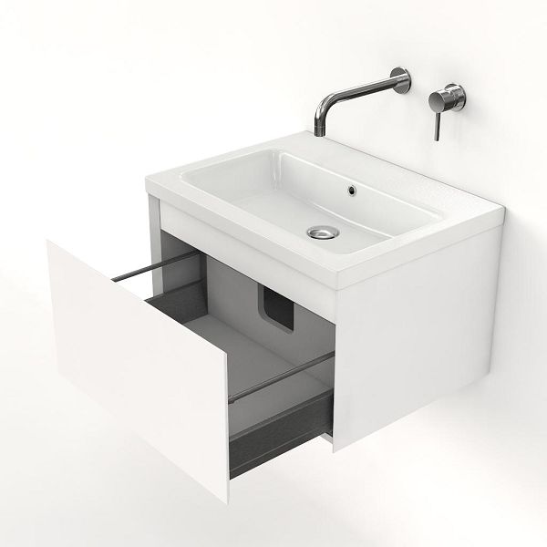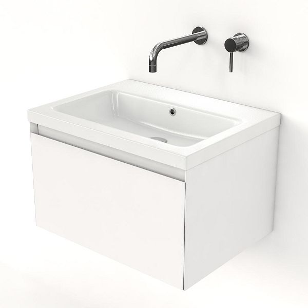 | | Bellanti Solo/Amelia badmeubel 60x46 1 softclose lade wit mat greeploos keramische wastafel wit glans zonder kraangaten |