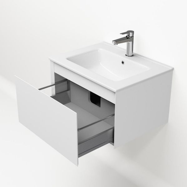 | | Bellanti Solo/Etna badmeubel 60x46 1 softclose lade wit mat greeploos keramische wastafel wit met 1 kraangat |