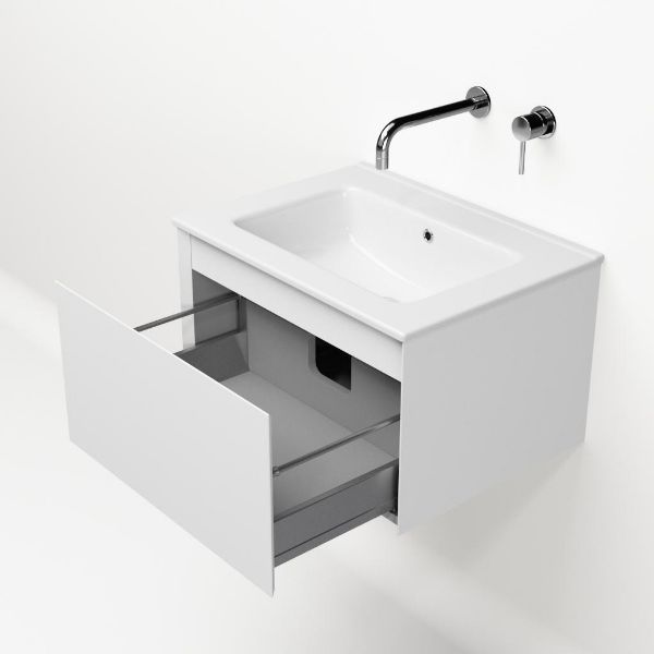 | | Bellanti Solo/Etna badmeubel 60x46 1 softclose lade wit mat greeploos keramische wastafel wit zonder kraangaten |
