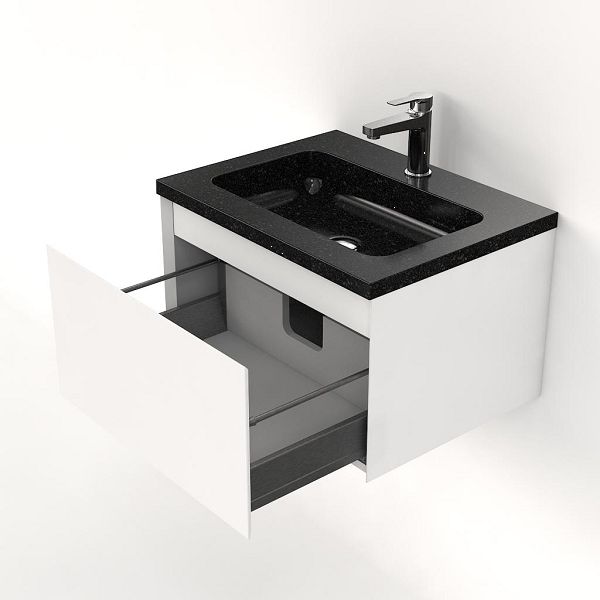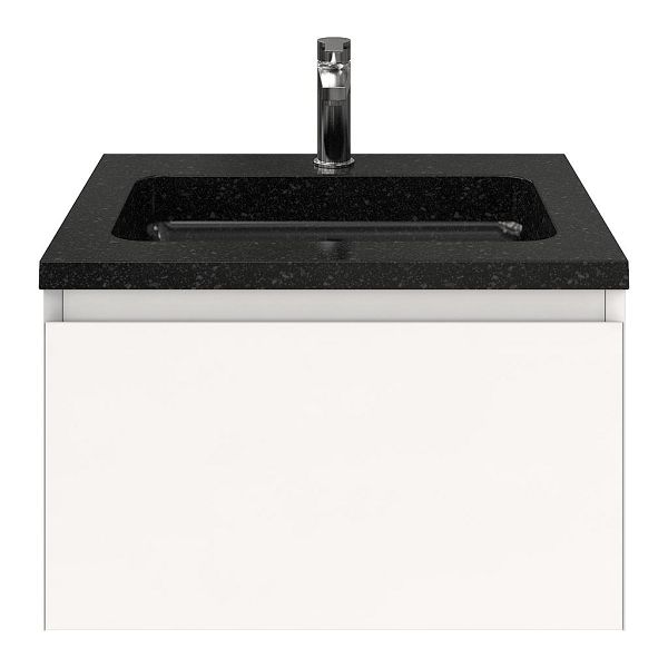| | Bellanti Solo/Square badmeubel 60x46 1 softclose lade wit mat greeploos natuursteen wastafel shanxi black met 1 kraangat |