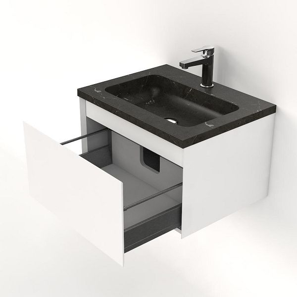 | | Bellanti Solo/Square badmeubel 60x46 1 softclose lade wit mat greeploos natuursteen wastafel blue stone met 1 kraangat |