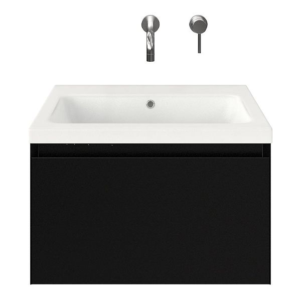 | | Bellanti Solo/Amelia badmeubel 60x46 1 softclose lade zwart mat greeploos keramische wastafel wit mat zonder kraangaten |