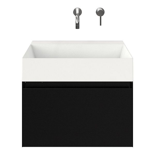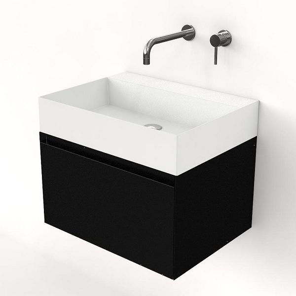 | | Bellanti Solo/Azzurra badmeubel 60x46 1 softclose lade zwart mat greeploos keramische wastafel wit mat zonder kraangaten |