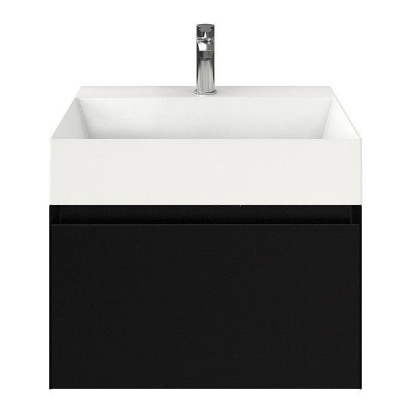 | Bellanti Solo/Azzurra badmeubel 60x46 1 softclose lade zwart mat greeploos keramische wastafel wit glans met 1 kraangat |