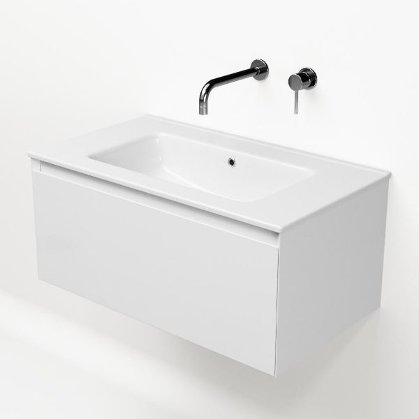 | | Bellanti Solo/Etna badmeubel 80x46 1 softclose lade wit hoogglans greeploos keramische wastafel wit zonder kraangaten |