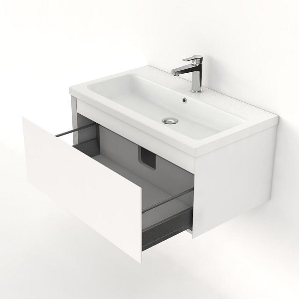 | Bellanti Solo/Amelia badmeubel 80x46 1 softclose lade wit mat greeploos keramische wastafel wit mat met 1 kraangat |