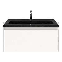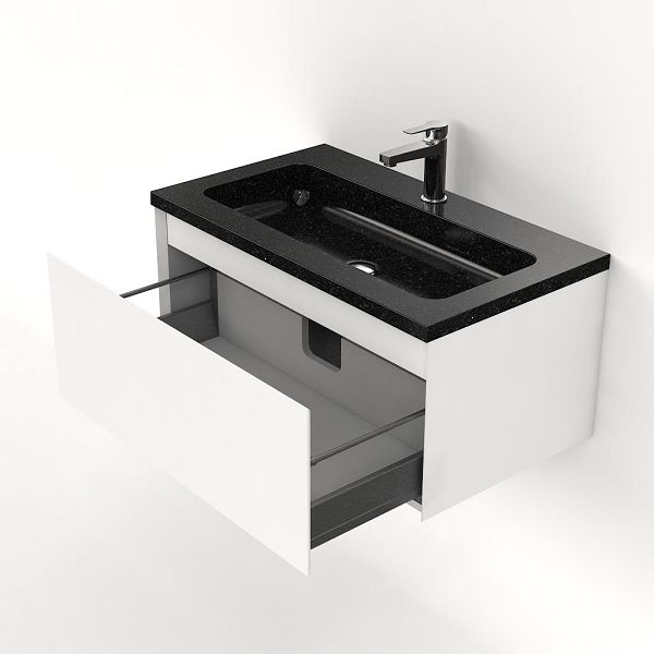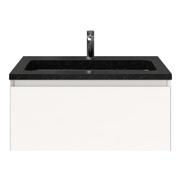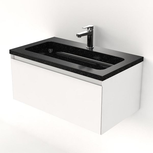 | | Bellanti Solo/Square badmeubel 80x46 1 softclose lade wit mat greeploos natuursteen wastafel shanxi black met 1 kraangat |