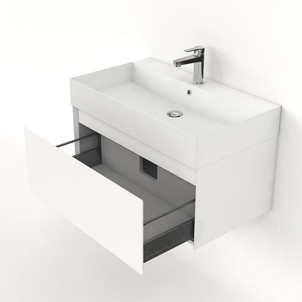 Bellanti Solo/Azzurra badmeubel 80x46 1 softclose lade wit mat greeploos keramische wastafel wit mat met 1 kraangat