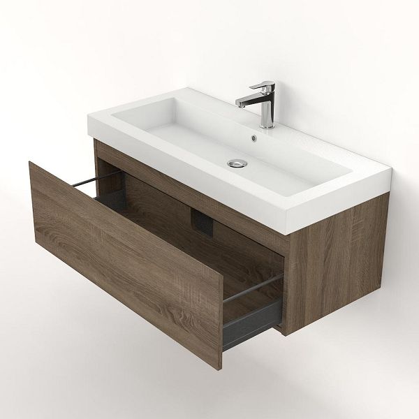 | | Bellanti Solo/Esta badmeubel 100x46 1 softclose lade eiken donker greeploos polystone wastafel wit met 1 kraangat |