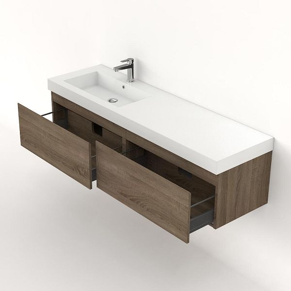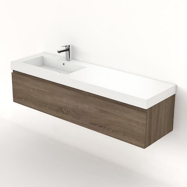 | | Bellanti Solo/Esta badmeubel 160x46 2 softclose laden eiken donker greeploos polystone enkele wastafel links wit met 1 kraangat |
