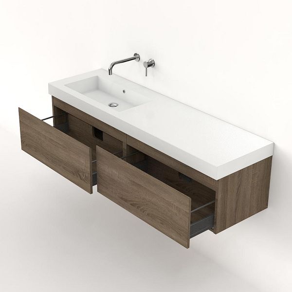 Bellanti Solo/Esta badmeubel 160x46 2 softclose laden eiken donker greeploos polystone enkele wastafel links wit zonder kraangat