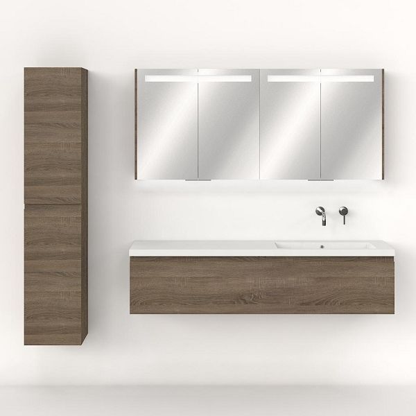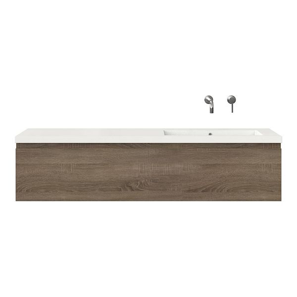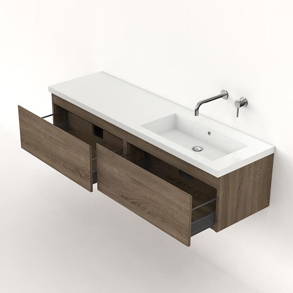 | Bellanti Solo/Esta badmeubel 160x46 2 softclose laden eiken donker greeploos polystone enkele wastafel rechts wit zonder kraangat |
