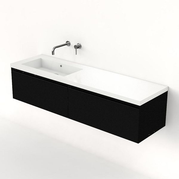 Bellanti Solo/Esta badmeubel 160x46 2 softclose laden mat zwart greeploos polystone enkele wastafel links zonder kraangat
