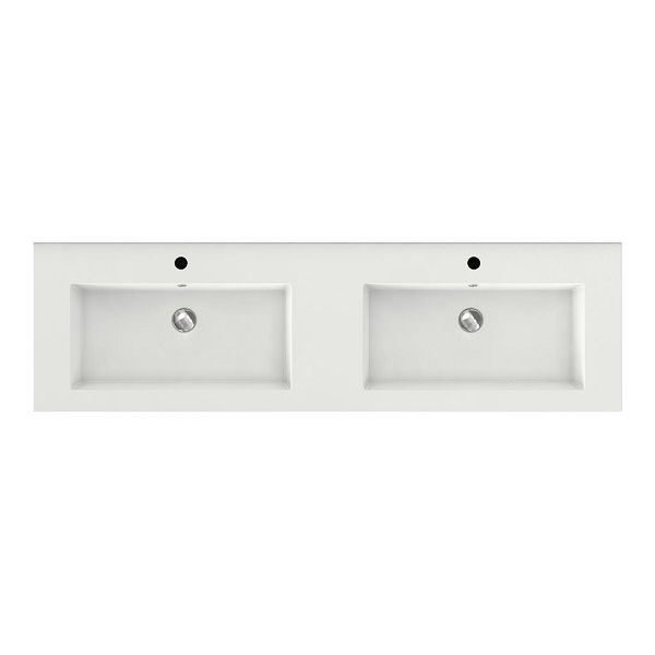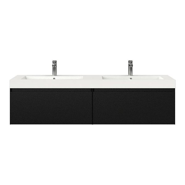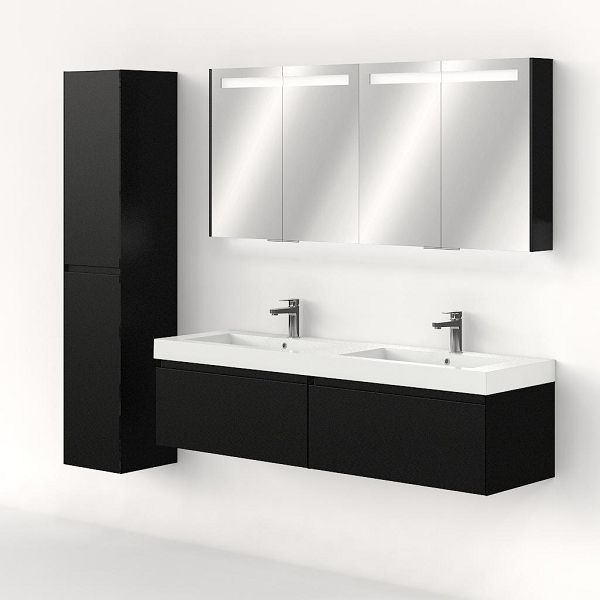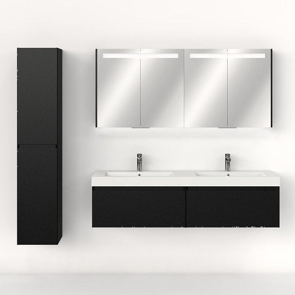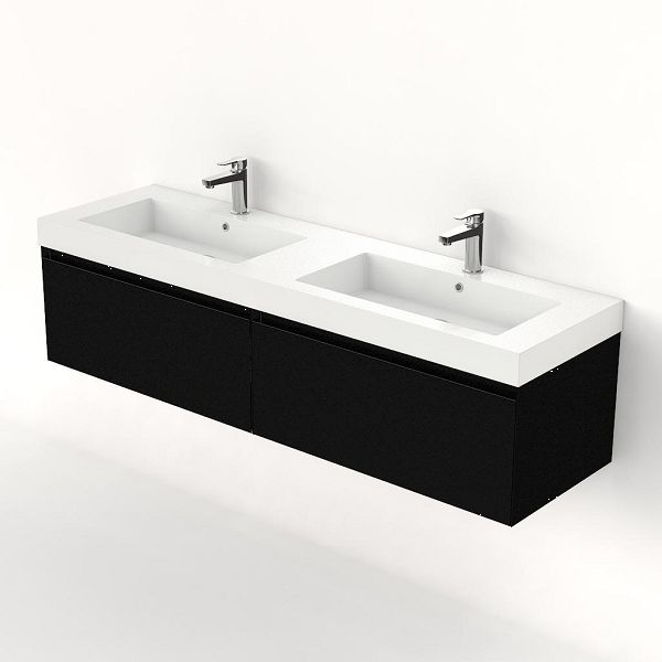 Greeploos badkamermeubel in de kleur zwart mat is 160 cm breed. De wastafel is vervaardig in polystone en heeft de kleur wit. Dit badkamermeubel met deze wastafel is leverbaar tussen de 60 cm t/m 160 cm
