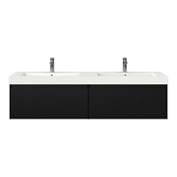 | | Bellanti Solo/Esta badmeubel 160x46 2 softclose laden mat zwart greeploos polystone dubbele wastafel wit met 2 kraangaten |