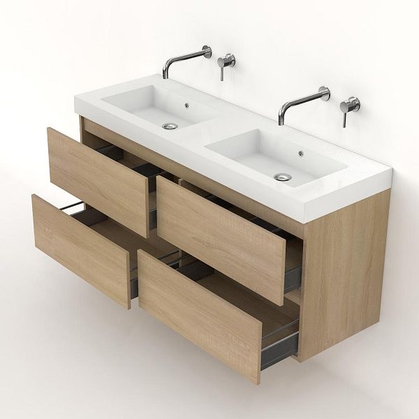 | Bellanti Elena/Esta badmeubel 140x46 4 softclose laden licht eiken greeploos polystone wastafel dubbel wit zonder kraangaten |