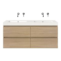 | | Bellanti Elena/Esta badmeubel 140x46 4 softclose laden licht eiken greeploos polystone wastafel dubbel wit zonder kraangaten |