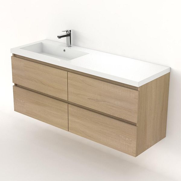 | | Bellanti Elena/Esta badmeubel 140x46 4 softclose laden licht eiken greeploos polystone wastafel wit met 1 kraangat |