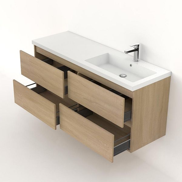 Bellanti Elena/Esta badmeubel 140x46 4 softclose laden licht eiken greeploos polystone wastafel wit met 1 kraangat