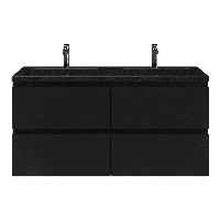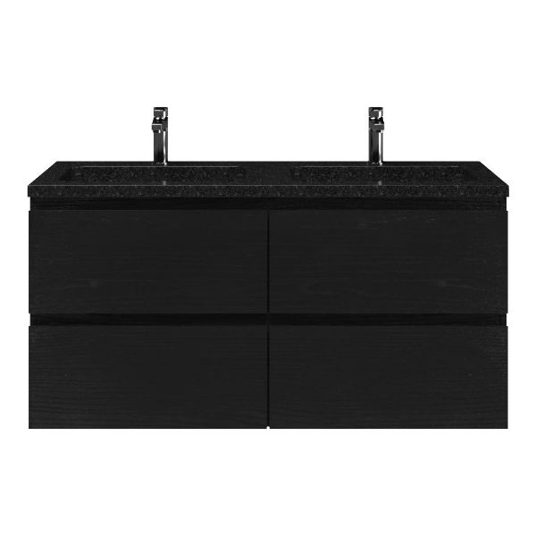 | Bellanti Gisella/Square badmeubel 120x46 4 softclose laden zwart mat eiken greeploos natuursteen wastafel dubbel shanxi black met 2 kraangaten |