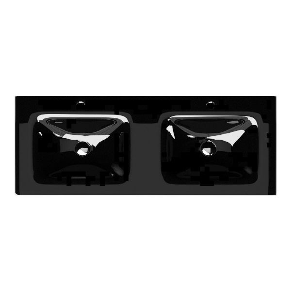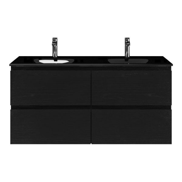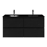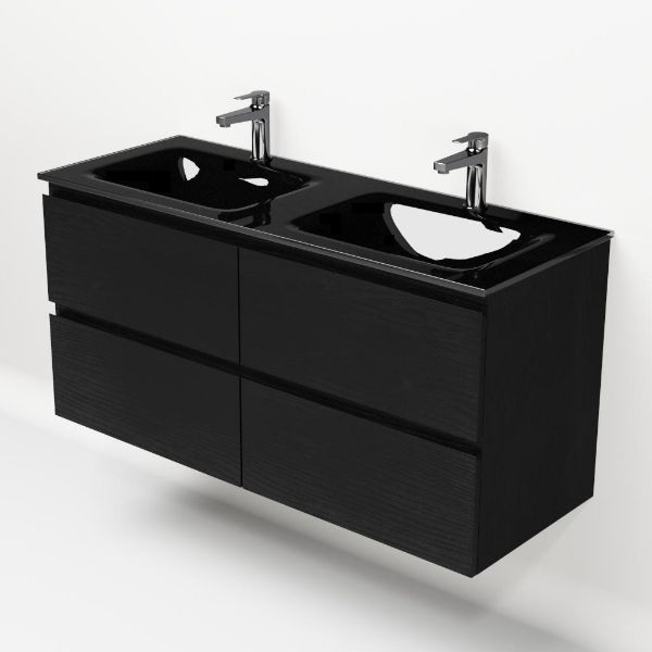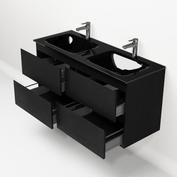 | | Bellanti Gisella/Glass badmeubel 120x46 4 softclose laden zwart mat eiken greeploos glazen wastafel dubbel zwart met 2 kraangaten |