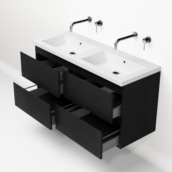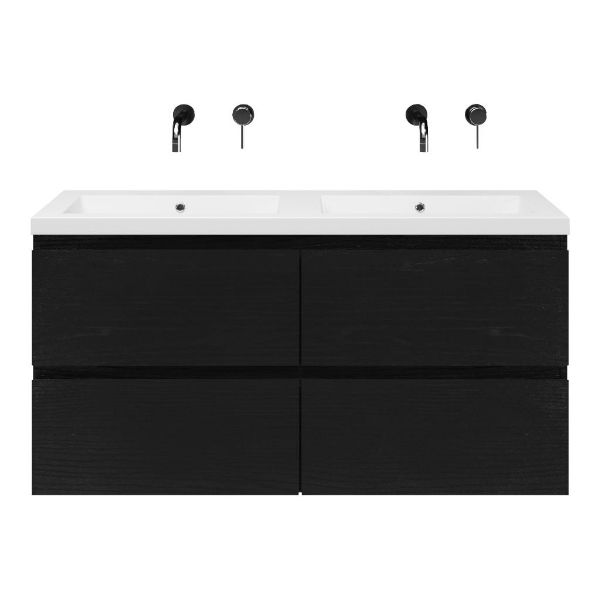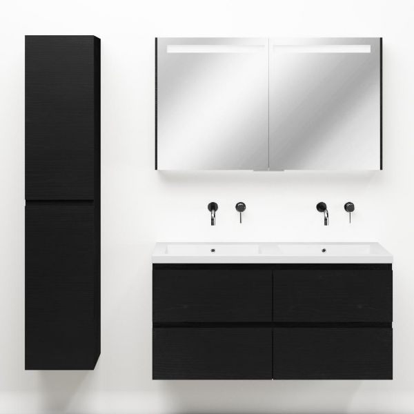 | | Bellanti Gisella/Esta badmeubel 120x46 4 softclose laden zwart mat eiken greeploos polystone wastafel dubbel wit zonder kraangaten |
