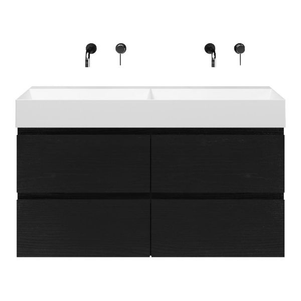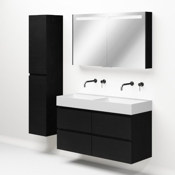 | | Bellanti Gisella/Azzurra badmeubel 120x46 4 softclose laden zwart mat eiken greeploos keramische wastafel dubbel wit mat zonder kraangaten |