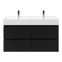 | | Bellanti Gisella/Azzurra badmeubel 120x46 4 softclose laden zwart mat eiken greeploos keramische wastafel dubbel wit mat met 2 kraangaten |