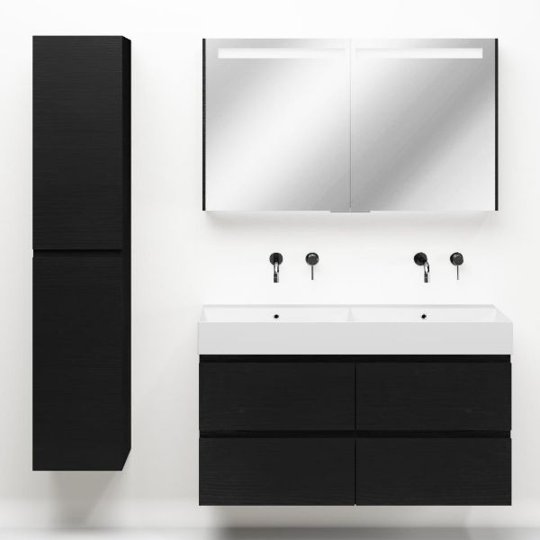 | | Bellanti Gisella/Azzurra badmeubel 120x46 4 softclose laden zwart mat eiken greeploos keramische wastafel dubbel wit glans zonder kraangaten |