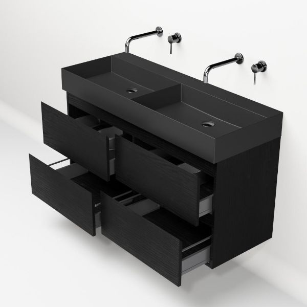 | Bellanti Gisella/Azzurra badmeubel 120x46 4 softclose laden zwart mat eiken greeploos keramische wastafel dubbel antraciet mat zonder kraangaten |