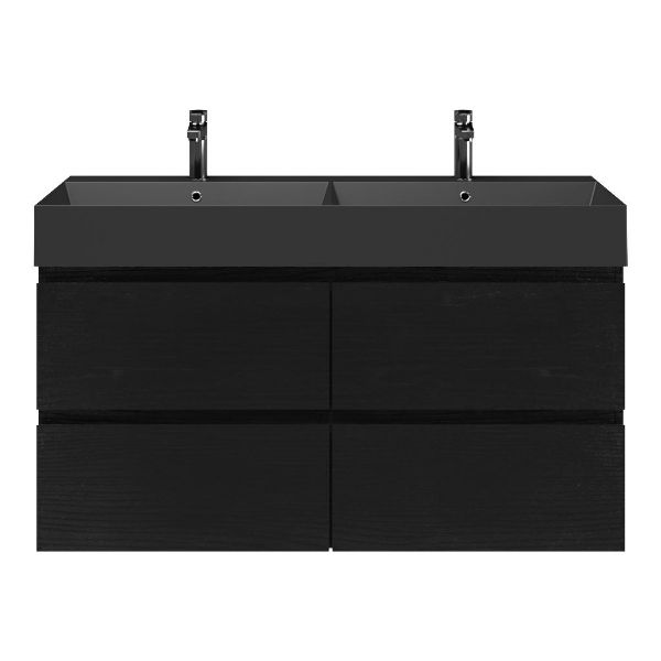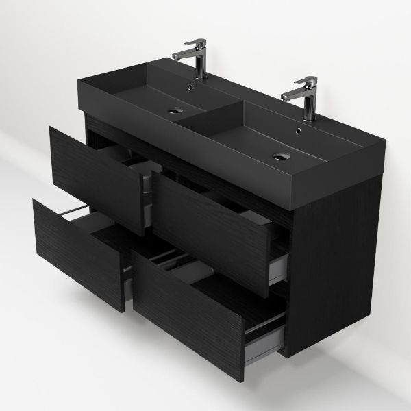 Bellanti Gisella/Azzurra badmeubel 120x46 4 softclose laden zwart mat eiken greeploos keramische wastafel dubbel antraciet mat met 2 kraangaten