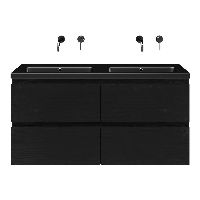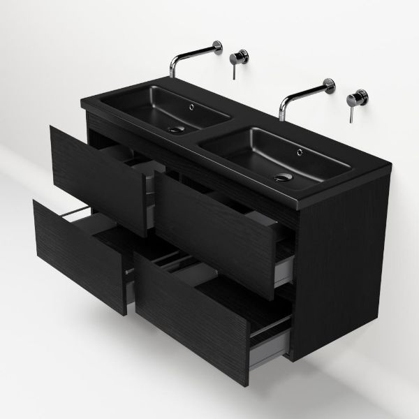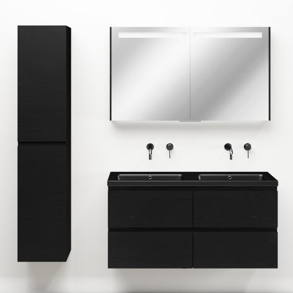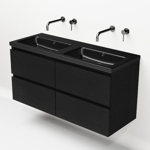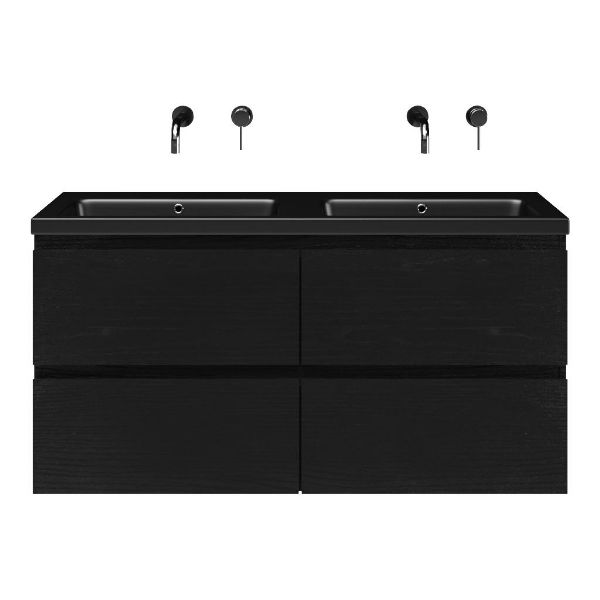 | Bellanti Gisella/Amelia badmeubel 120x46 4 softclose laden zwart mat eiken greeploos keramische wastafel dubbel zwart mat zonder kraangaten |