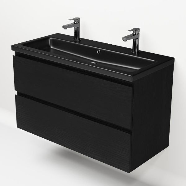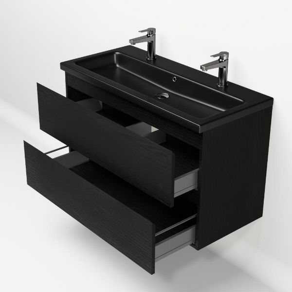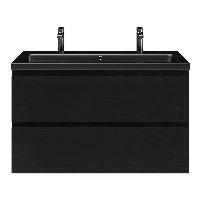 | Bellanti Gisella/Amelia badmeubel 100x46 2 softclose laden zwart mat eiken greeploos keramische wastafel zwart mat met 2 kraangaten |