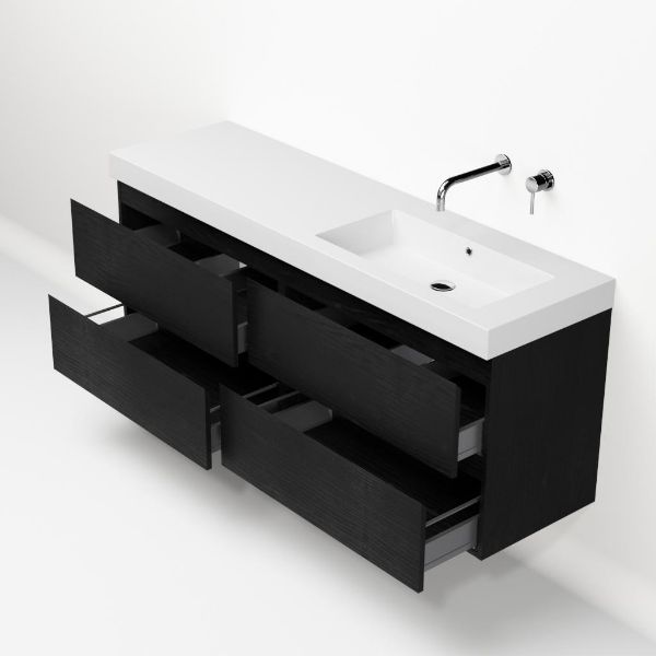 | Bellanti Gisella/Esta badmeubel 160x46 4 softclose laden zwart mat eiken greeploos polystone enkele wastafel rechts zonder kraangat |