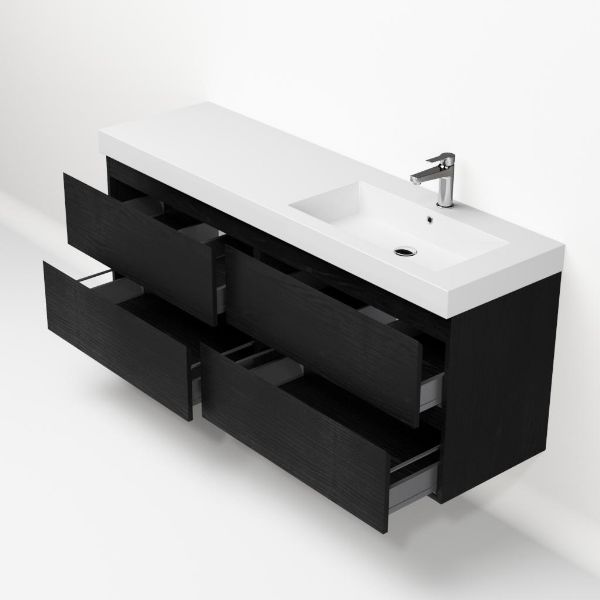 | | Bellanti Gisella/Esta badmeubel 160x46 4 softclose laden zwart mat eiken greeploos polystone enkele wastafel rechts wit met 1 kraangat |