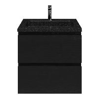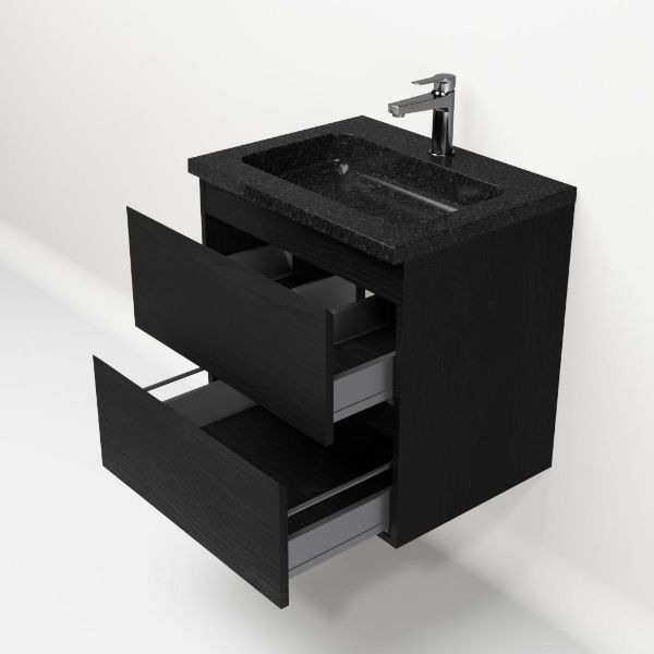 | Bellanti Gisella/Square badmeubel 60x46 2 softclose laden zwart mat eiken greeploos natuursteen wastafel shanxi black met 1 kraangat |