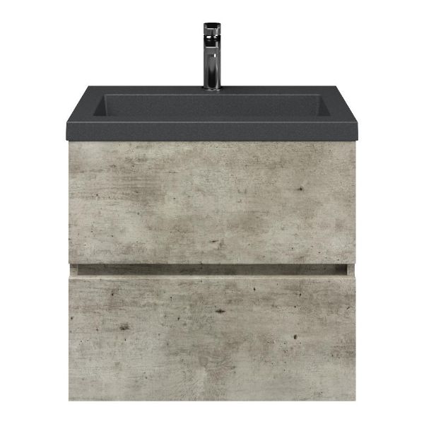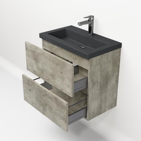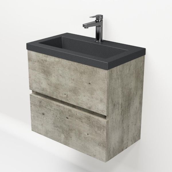 | | Bellanti Fabia/Esta-Q ondiep badmeubel 60x36 2 softclose laden steigerhout licht grijs greeploos met quartz wastafel mat grijs met 1 kraangat zonder overloop |