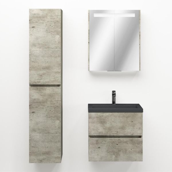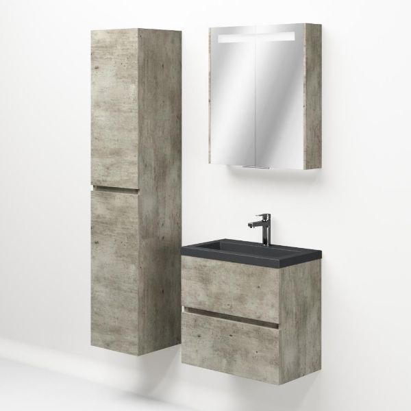 Ondiepe greeploos badkamermeubel in de kleur steigerhout licht grijs. Badmeubel is praktisch voor een compact badkamer. Het meubel van 60 cm breed is er. De wastafel is vervaardig in quartz en heeft de kleur grijs mat quartz. Dit badkamermeubel met deze wastafel is leverbaar tussen de 60 cm t/m 100 cm.