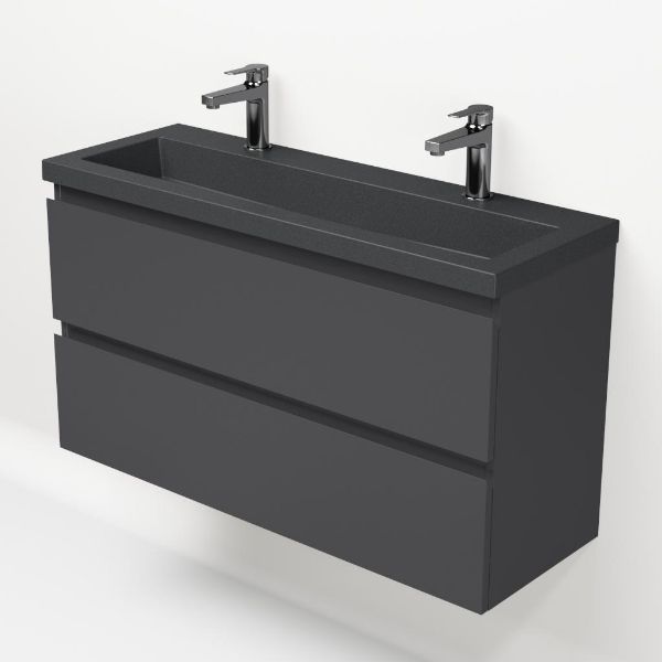 | Bellanti Secca/Esta-Q ondiep badmeubel 100x36 2 softclose laden antraciet mat greeploos met quartz wastafel mat grijs met 2 kraangaten zonder overloop |