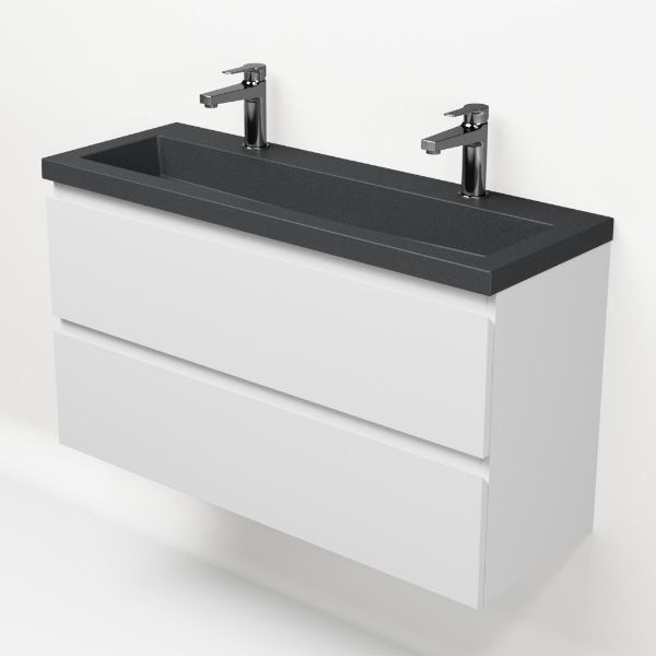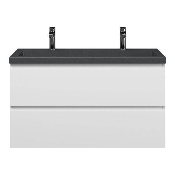 | | Bellanti Secca/Esta-Q ondiep badmeubel 100x36 2 softclose laden wit mat greeploos met quartz wastafel mat grijs met 2 kraangaten zonder overloop |