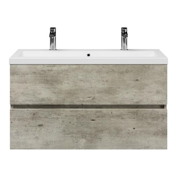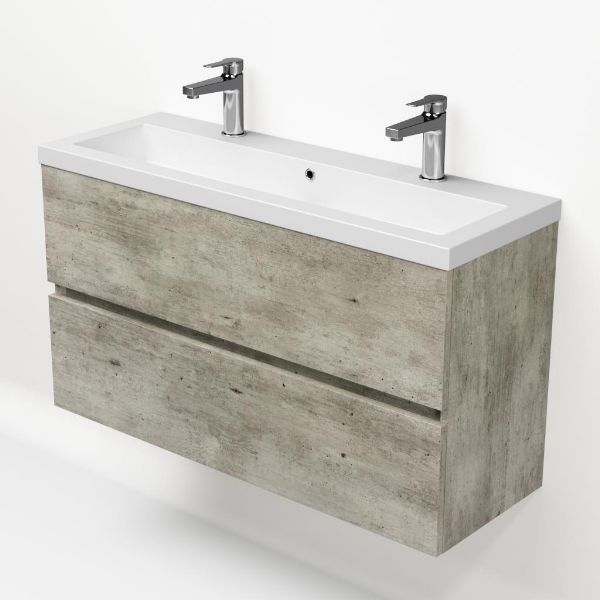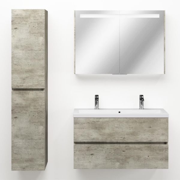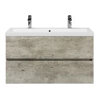 | | Bellanti Fabia/Esta-Q ondiep badmeubel 100x36 2 softclose laden steigerhout licht grijs greeploos met wastafel mat wit met 2 kraangaten met overloop |