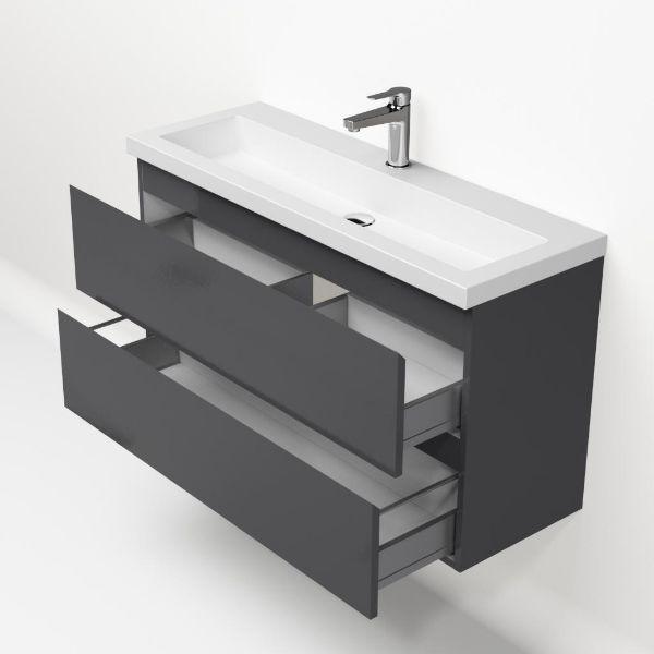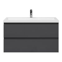 Ondiepe greeploos badkamermeubel in de kleur antraciet hoogglans. Badmeubel is praktisch voor een compact badkamer. Het meubel van 100 cm breed is er. De wastafel is vervaardig in quartz en heeft de kleur wit mat quartz. Dit badkamermeubel met deze wastafel is leverbaar tussen de 60 cm t/m 120 cm.